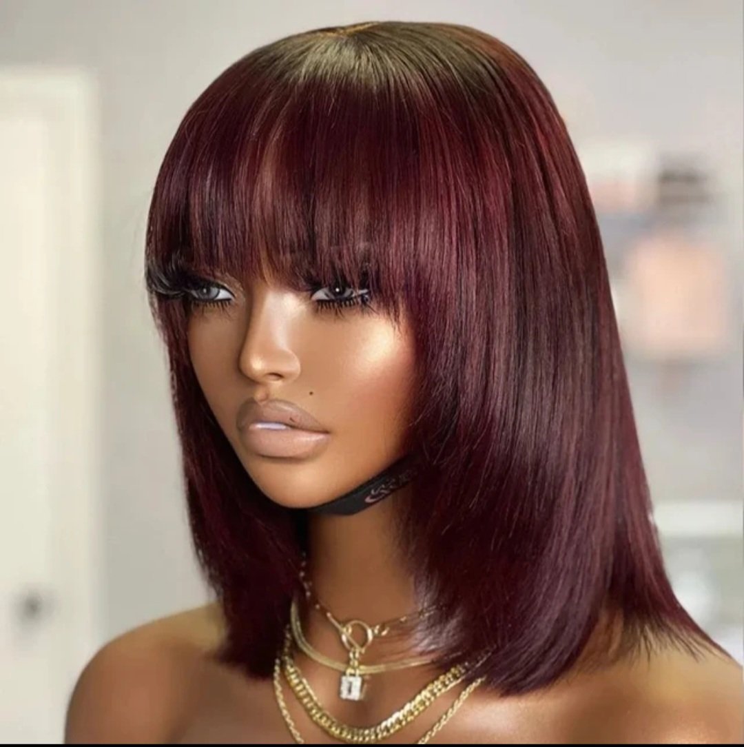 99J Layered Preplucked Human Hair BOB Lace Wig with Frange Bang 6×5 180% density