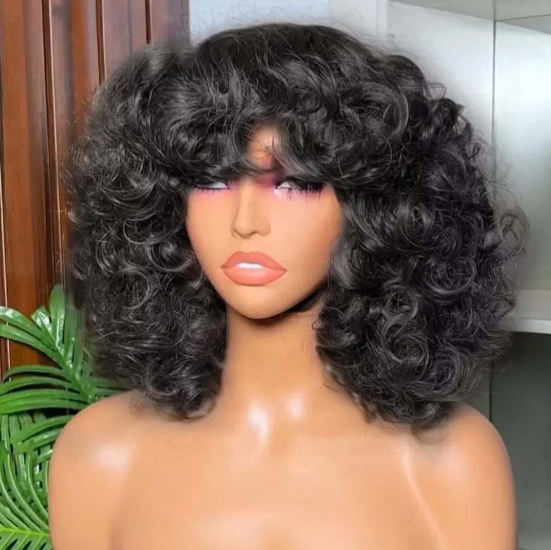 Glueless Bouncy Curly Wig 250% Density Super Bouncy Wand Curl Human Hair 14inches