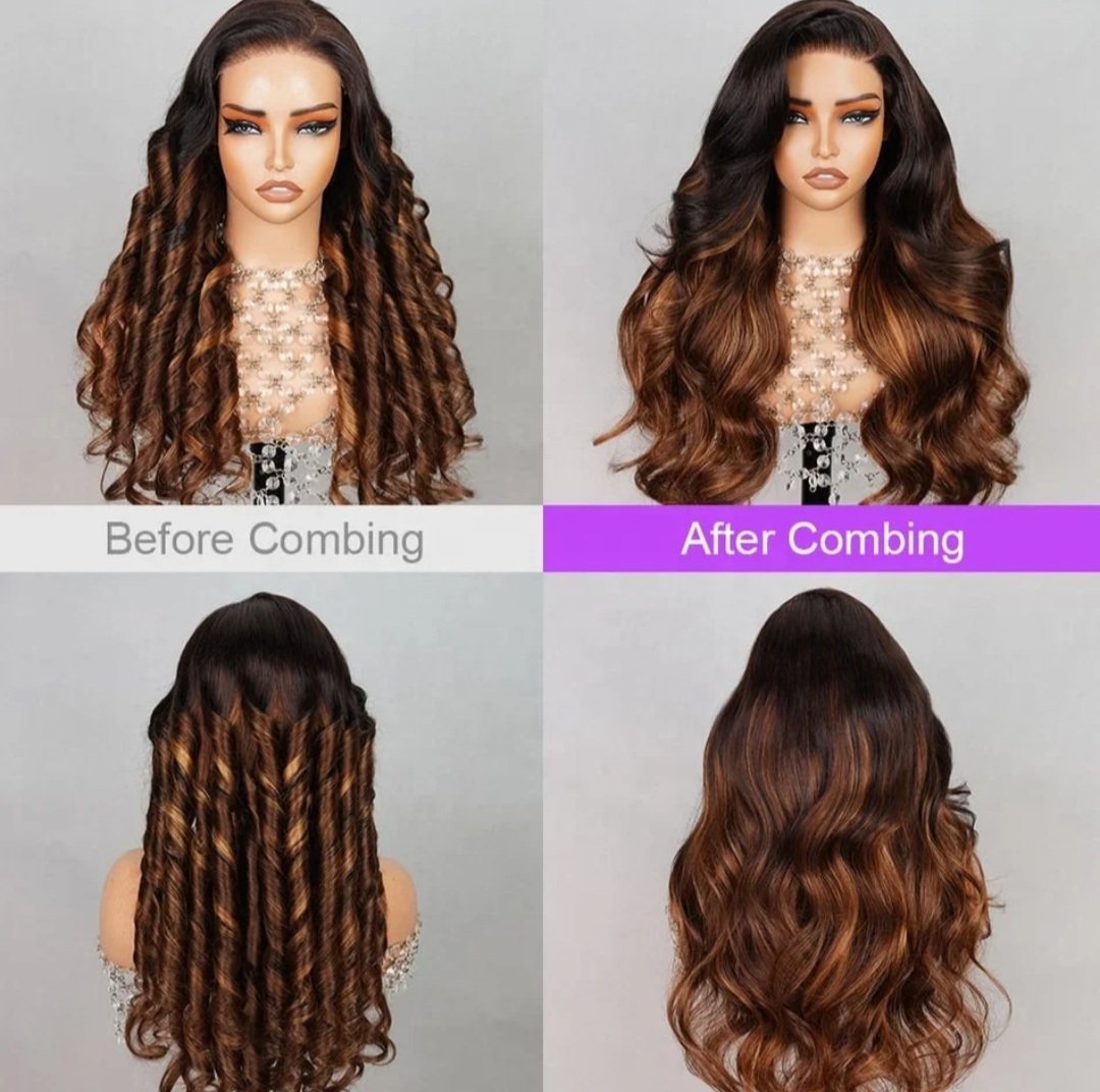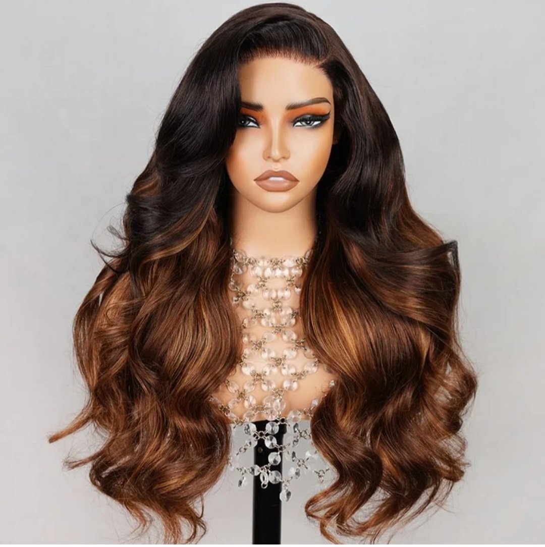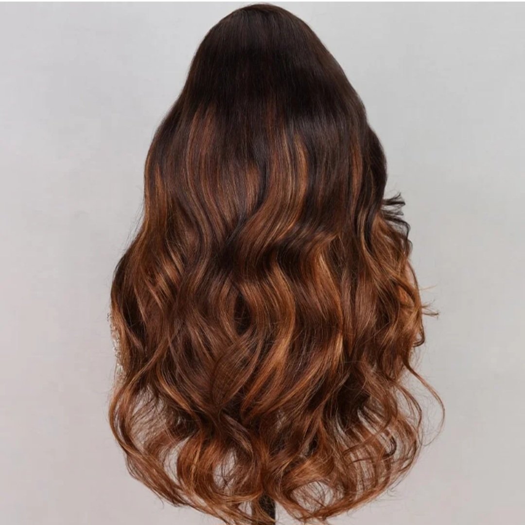 Ombre Brown Highlight Color Loose Wave Wig Butterfly Layered Cut 6×5 Glueless Wig 200% Density