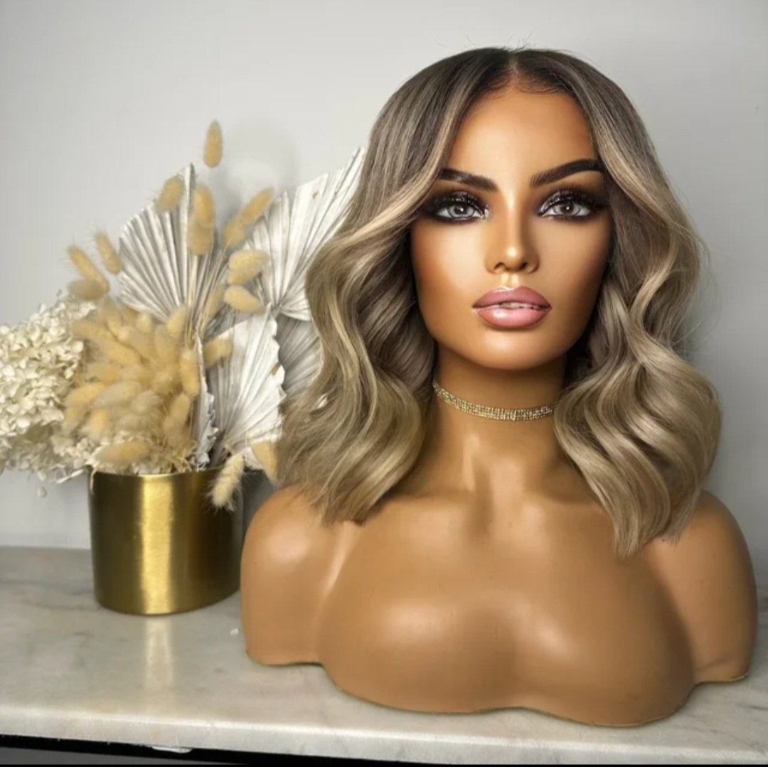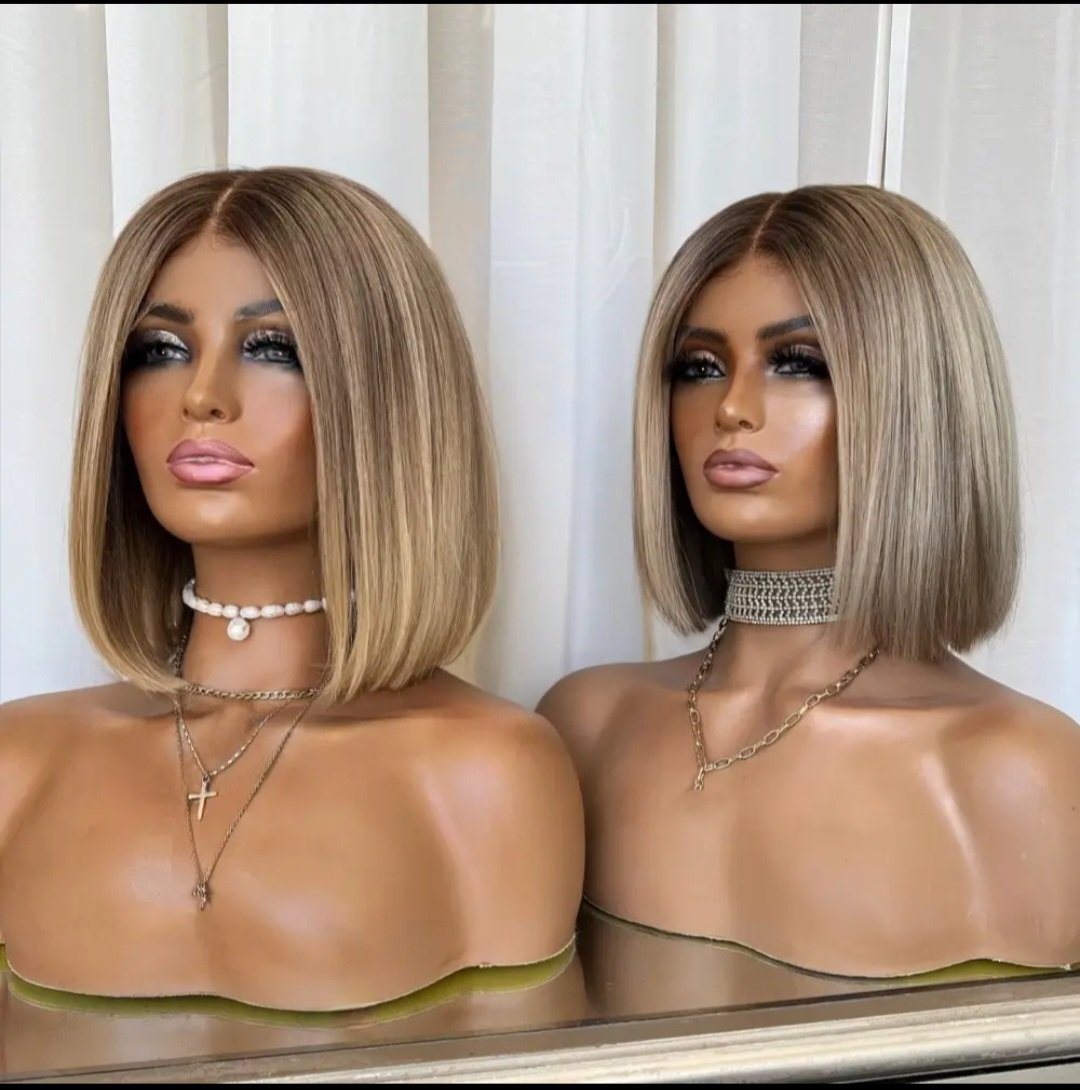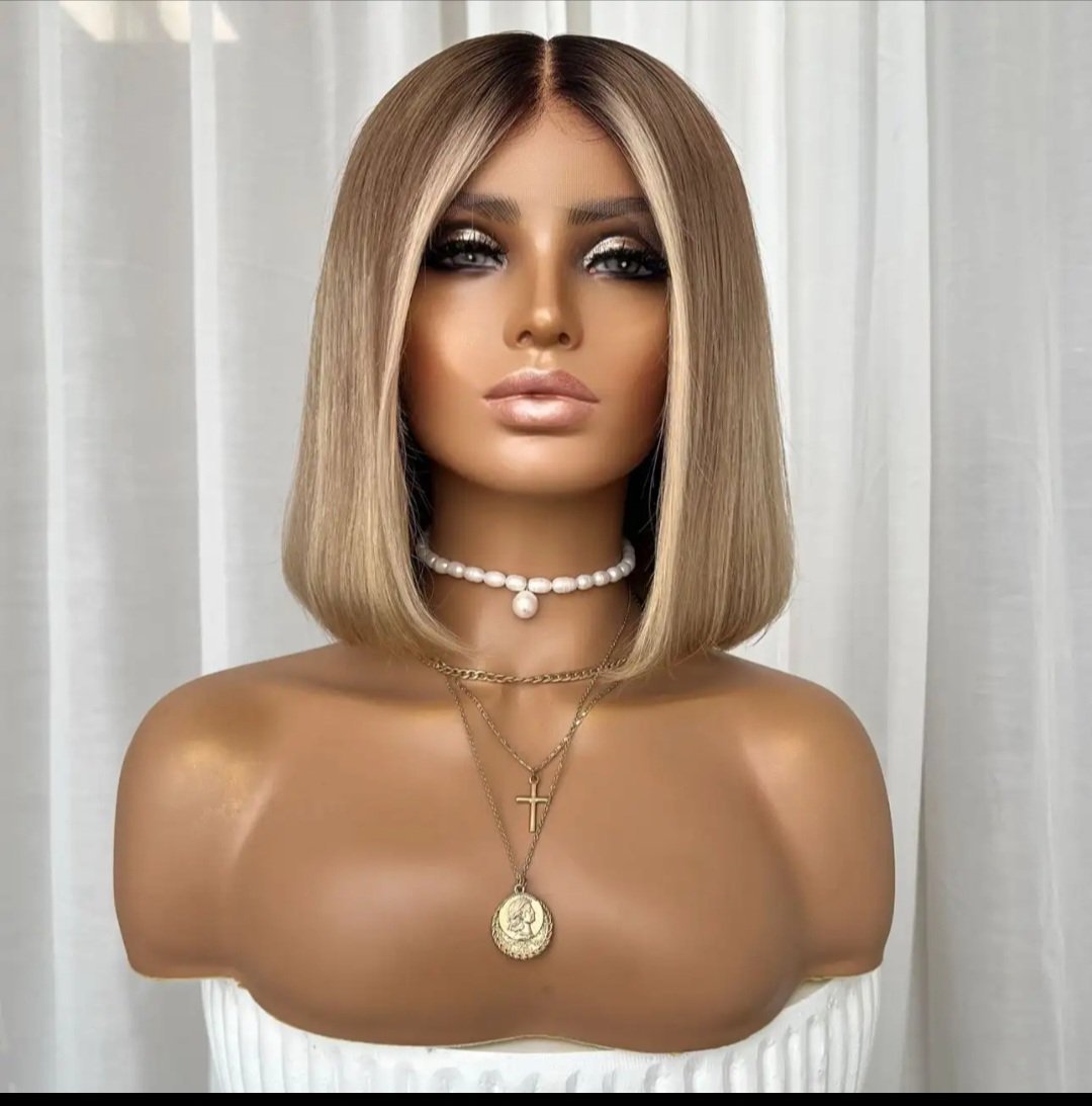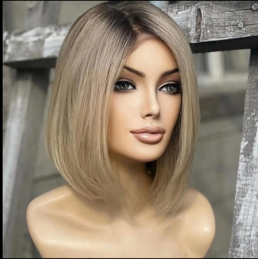 613 Blonde Bob Wigs With Dark Brown Roots Ombre 1B/613 13×4 Lace Front Bob Wigs