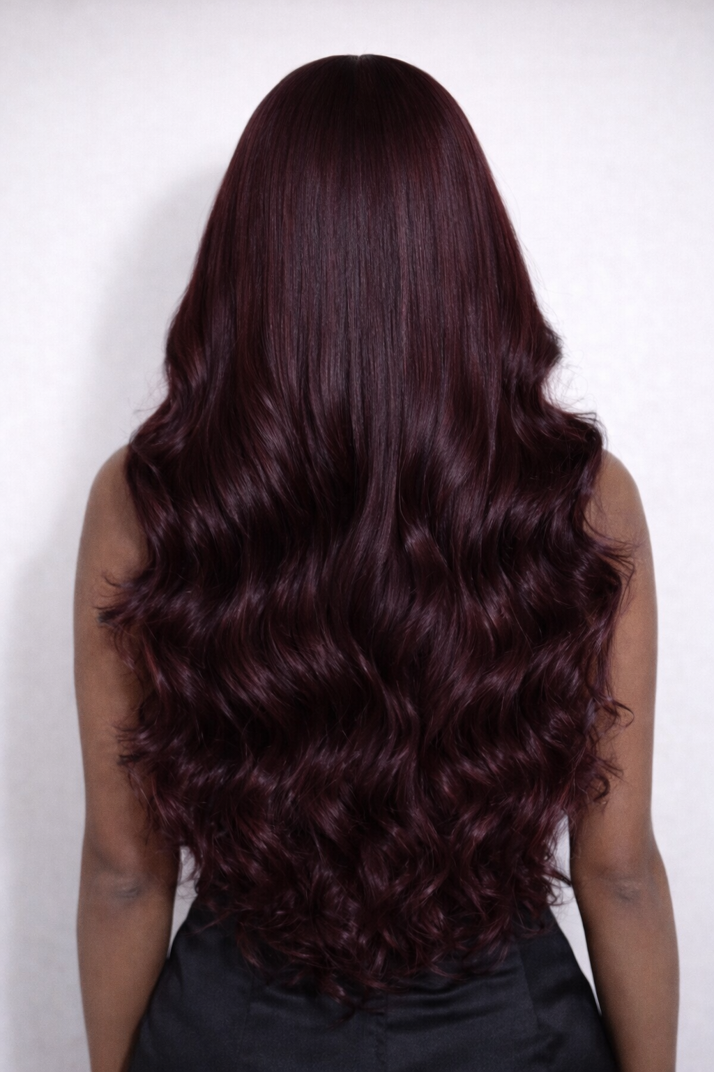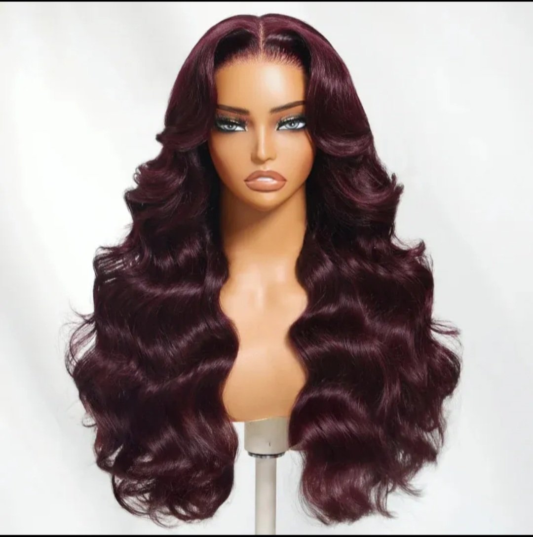 100% Human Hair Black Cherry Bye-Bye Knots 13×4 Lace Glueless Loose Wave Wig