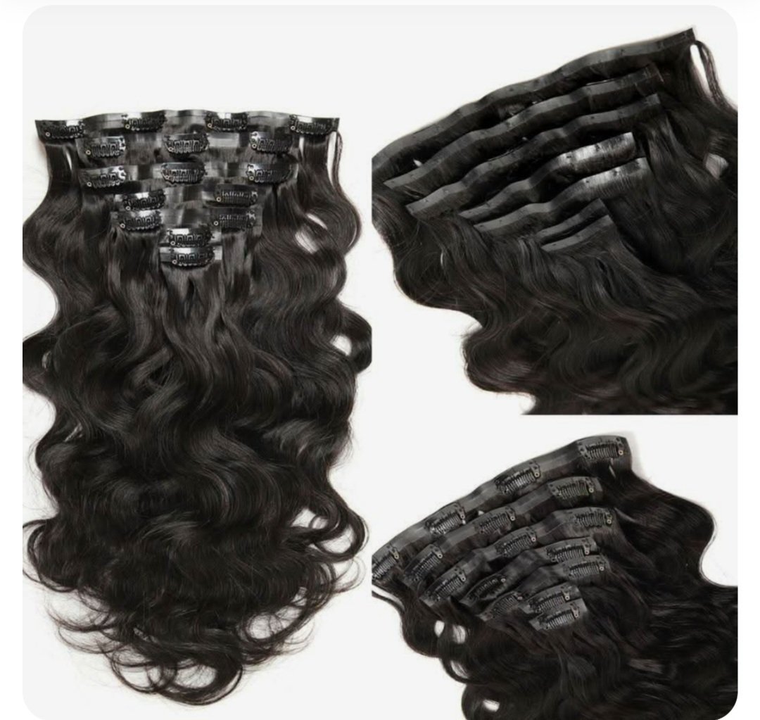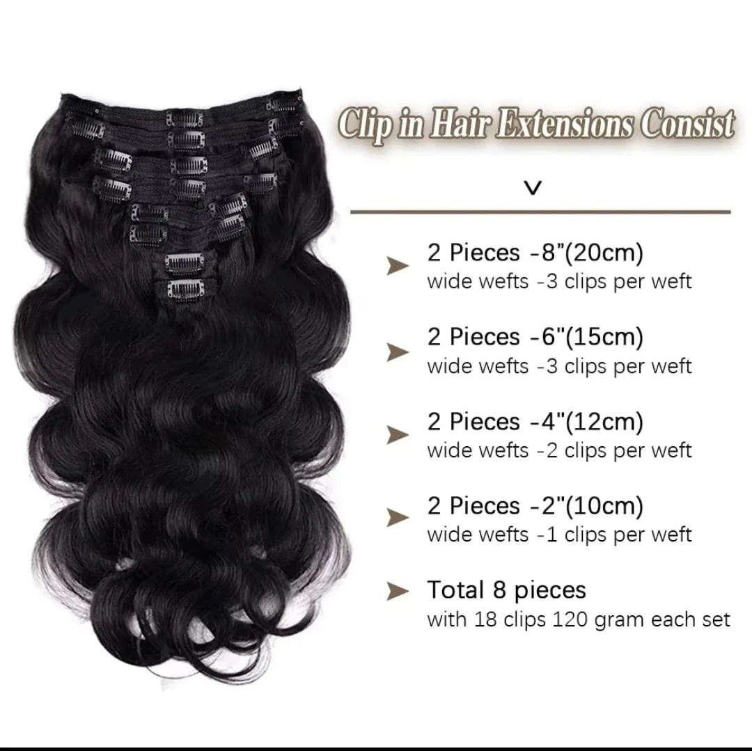 Soft Body Wave Seamless Clip in Human Hair Extensions Hair Pieces 7pcs/set with Free Gift